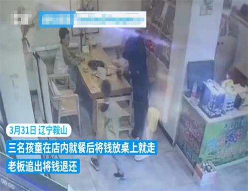 在一則視頻上能夠看到3名孩童在吃過飯后悄悄的將自己手中的錢放在桌上,老板發(fā)現(xiàn)孩子付錢之后又追出去將這些錢還給了小孩。在視頻中能夠看到有3個年歲不大的孩子進入到店中就餐,老板給這3個孩子上了3份冰粉之后,孩子吃完之后就將錢放在了桌上,老板看到之后趕緊追了出去。