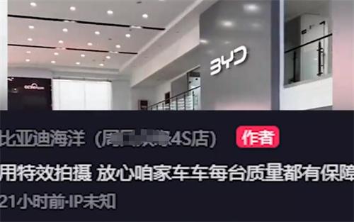4S店本來想用特效營造出暴雨淹沒店鋪的這一效果去吸引眾多網友的關注和吸引流量,但這一個舉動卻反而適得其反,讓眾多網友在線對店鋪作出批評。根據了解4月3日河南某一個比亞迪的4s店,利用拍攝的特效效果,將店內的場景變為了暴雨把店鋪淹沒的景象,在配文中還寫道,下了一天雨成了這樣,來店里游個泳,視頻傳播到網絡平臺之后,網友紛紛指責店家這一行為,而店家也作出回應,是特效的拍攝,每一臺車在質量方面是很有保證的。