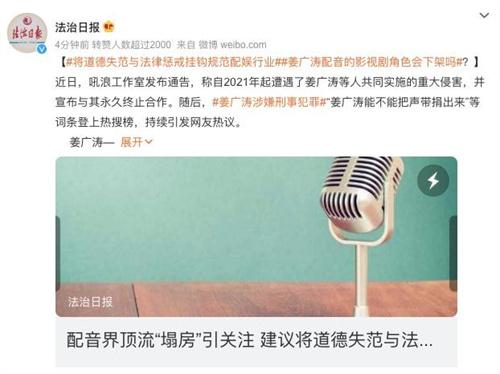 華東師范大學立法與政治戰略研究中心的研究員余鋒說到,包括影視在內的一些文學作品,其中是文化的使者,同時也是文化傳承的一大載體,在制作過程中會耗費巨大的資金,而且參與影視制作的人員眼極為眾多,僅僅因為某一個配音演員觸犯了法律,就對整部劇進行下架,無論是對經濟價值方面還是文化價值方面,損失都是極大的。