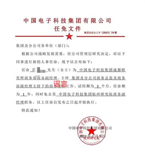 中國(guó)電科集團(tuán)公司已經(jīng)對(duì)所有的單位展開了輪次排查,其中包括了勞務(wù)派遣或者是協(xié)作人員,都沒有查到陳某某這名員工,因此網(wǎng)絡(luò)上出現(xiàn)的任免文件明顯是造假的。事情的輿論越來(lái)越?jīng)坝浚袊?guó)電科相關(guān)單位已經(jīng)報(bào)案,成都市勞動(dòng)監(jiān)察部門的工作人員也表示事件還在進(jìn)一步的調(diào)查之中。