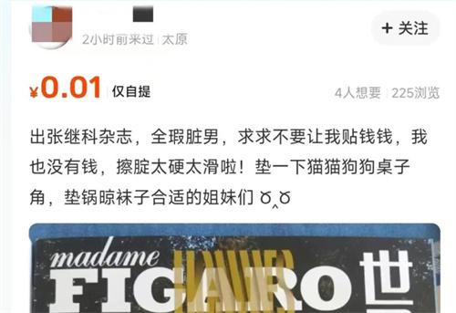 4月5日,記者在某二手平臺搜索張繼科的鏈接,看到很多有關的二手商品正在平臺交易,比如張繼科親筆簽名照片僅標價35元出售,據這位賣家在介紹列表中描述,自己從事傳媒行業,此次所出售的簽名照片支持拿去鑒定,所發出的簽名照總共有兩張,都用相框保存了起來,張繼科的簽名是用金色字體書寫,后續,記者又從搜索列表中查看到有人使用一元出售張繼科簽名照,還有0.01元出售張繼科封面雜志的帖子。