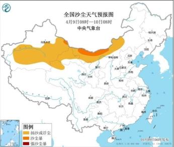 中央氣象臺4月9日發布沙塵暴藍色預警,北方地區將迎來沙塵天氣,其中新疆,內蒙古的局部地區會有沙塵暴。預計4月9日的8:00到4月10日的8點,內蒙古中西部,新疆南部和東部,青海西北部以及甘肅西部等地的部分地區會有浮塵天氣或揚沙天氣。