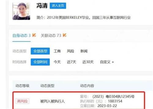 最近,王寶強女友馮清成為被執行人的事件引發了公眾關注,根據相關資料顯示,3月22日,深圳市千尋魅影科技有限公司的法人代表馮清被法院執行188萬,對于此事馮清本人在近期做出了回應,表示自己并非是公眾人物,也不想去占用任何的公共資源,將會在后續將事情交給法務地道的去處理各項事情后續,目前據查詢資料顯示,馮清所關聯的四家公司有三家公司都是吊銷狀態。