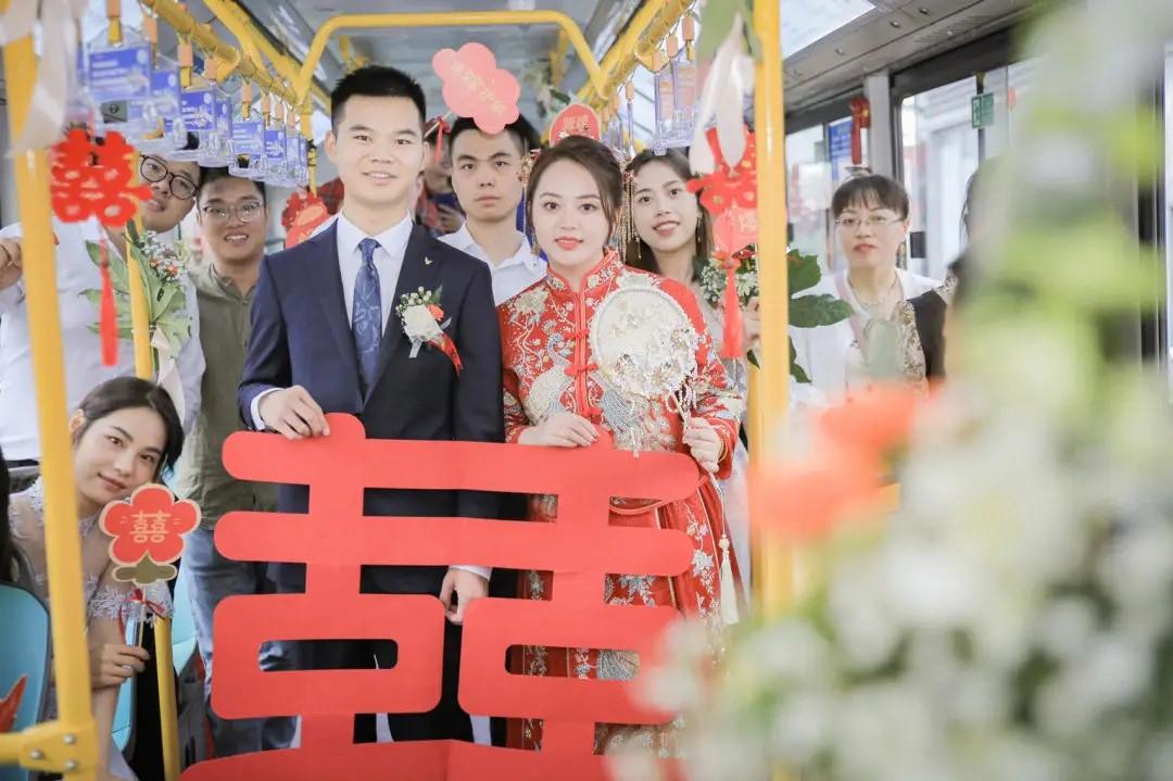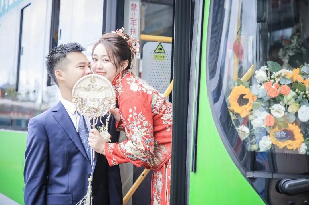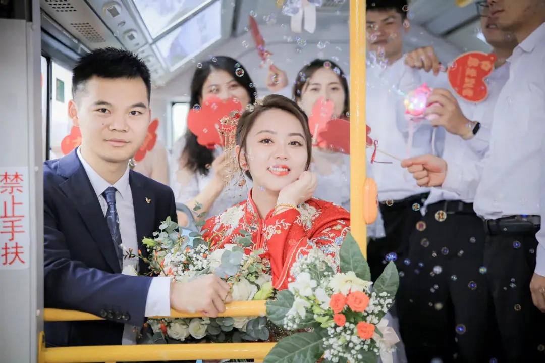 結婚的當天兩人都將傳統使用汽車當婚車的想法全部摒棄,毅然決然選擇公交車作為婚車,公交車是在10點到達婚禮現場,兩人從公交車里面攜手走出來,身邊的家人和朋友都非常的高興。新郎鄧雄全表示自己從早上6點多開始接親,然后從新娘的家里直接到達婚禮現場,在路上由于是早高峰的原因堵車,一共行駛一個多小時,兩人和親朋好友在車里有說有笑,擁有良好的氛圍感,并表示車上所有的人員都非常的高興,真誠的向鄧雄全與張蔚祝上結婚的祝福,這輛車裝著滿滿的幸福。