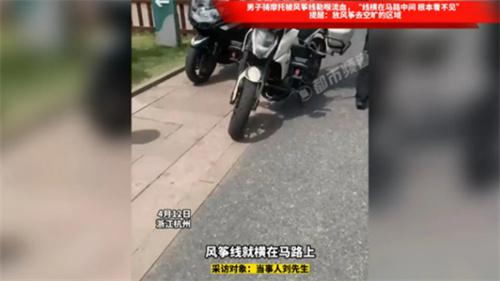 除了該車主之外,其實(shí)類似的事情經(jīng)常有發(fā)生,比如北京一男子在騎摩托,經(jīng)過綠心森林公園時(shí),被突然出現(xiàn)的風(fēng)箏線給攔住,幸好該男子頭戴頭盔并沒有受傷。