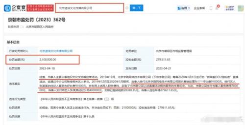 北京時間4月23日,北京速倍文化傳播有限公司因為違反了不正當競爭,被罰款了210萬元,據了解,當事人主要是從事一些組織文化交流等經營活動,在某一場的直播活動當中,主辦方想要通過中介公司聯絡相關的藝人去參加這場直播,當事人也表示能夠給予主辦方娛樂營銷經理孫某某好處費9.1萬元,也表示會付給藝人的經紀人好處費9.1萬元,主要是想要利用這兩個人的職務之便來獲取直播活動當中提供的一些服務交易機會,對于這件事情,主辦方公司支付了當事人費用將近70萬元,而支付給藝人經紀公司為40萬元,根據相關資料顯示,該藝人是張靚穎,而目前他的經紀人已經離去。