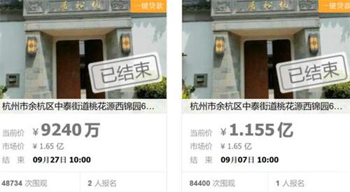 這套房子就是此前曾經在網絡上引起討論的“最貴法拍房”杭松居,在2021年9月份這套房子首次上線阿里法拍,在當時給出的起拍價是1.155億元,評估價格超過1.65億元,保證金都要繳納1000萬元,在最開始拍賣的時候只有1人報名競拍,最后卻由于沒有出價導致流拍,之后一年半,杭松居又出現在阿里法拍上面,這時的評估價格漲到1.71億元,起拍價則再次升高,達到了1.197億元,相比于首拍價上漲了420萬元,本次競拍共有5人報名,這所房子的成交價格也超過了之前陽光海岸1.133億法拍房的價格,成為最貴法拍房。