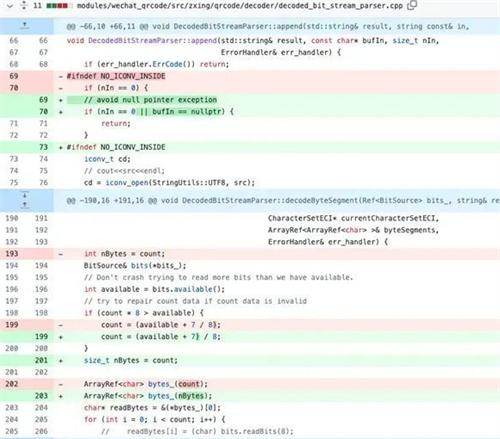根據相關媒體的報道,這一圖片可能導致內存讀寫出現bug,進而導致微信出現閃退情況,具體到底層代碼的話,若傳入的參數是bits_內存為空,而長度非零的ByteSegment,此時bits.available()返回值為0,那么count也會被更新為0,此時nBytes卻并沒有更新,保持非零,這也會導致后續的函數訪問到空指針readBytes,進而讀取到nBytes數據,導致程序異常終止,簡單來說就是利用系統的作用機制導致兩次讀取的數據不一樣,給用戶的正常使用造成困擾。