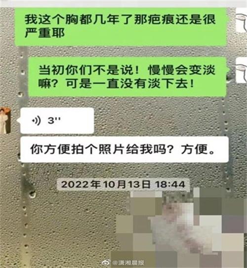北京時間4月27日,根據相關的媒體報道,在2019年的3月10號,浙江寧波的李女士在產后經過他自己朋友的介紹,花費了7.8萬元去浙江寧波初美醫療美容咨詢有限公司進行了豐胸的手術,然而在手術過后四年承諾的看不到任何的傷疤,問題卻一直都處于他的胸部正下方,這讓他本人感覺到十分的煩惱,在4月25日,記者聯系到了一名當初這個醫院的負責人,對方表示會在第一時間和當事人進行協商,并且會將結果進行反饋,到目前為止,林女士告知記者,這家公司沒有任何一個人正在與他聯系和協商此事。