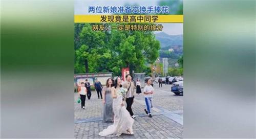 近日,重慶一地方兩名新娘在結(jié)婚時(shí)互換手捧花,意外發(fā)現(xiàn)對(duì)方竟是自己的高中同學(xué),一定是特別的緣分才會(huì)讓雙方再次相聚,妙不可言。