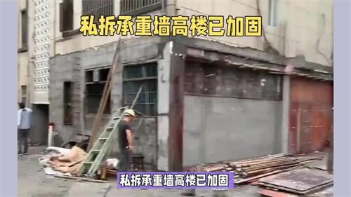 小區物業管理方面對此事作出的回應是當時施工人員表示不會拆除承重墻,但是施工人員進駐不到一個小時就把承重墻刨平了。施工人員表示開進小區進行施工的吊鉤叉車重量不到一噸,按照規定是可以進入小區進行施工的,此事具體如何處置,相關的責任人如何進行處罰,還在等待著進一步的調查和決定。