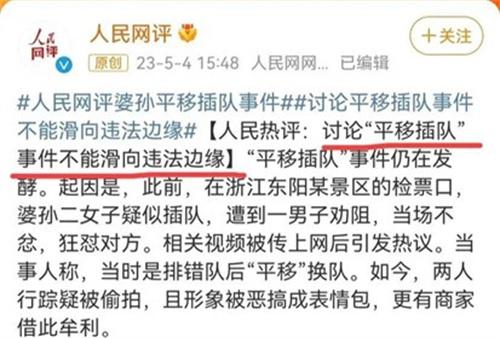 近日,平移插隊這一事件在發生之后在媒體上快速引起了發酵,人民網針對婆孫平一插件的事情也快速進行了回應,稱該起事件可以去進行討論,但是該起事件的出現不能夠使一部分人向法律邊緣不斷的傾斜,引發該起事件的主因是在五一假期之間去浙江東陽某景區旅游的婆孫二人在檢票口時一次出現了插隊的行為,破碎二人的這種行為,在當時被一名男子給勸阻了下來,勸阻的婆孫讓人感覺到非常的不憤立即瘋狂的向對方用言語發起攻擊,這一視頻再上傳到網絡之后,立刻引發了網友朋友們的注意。