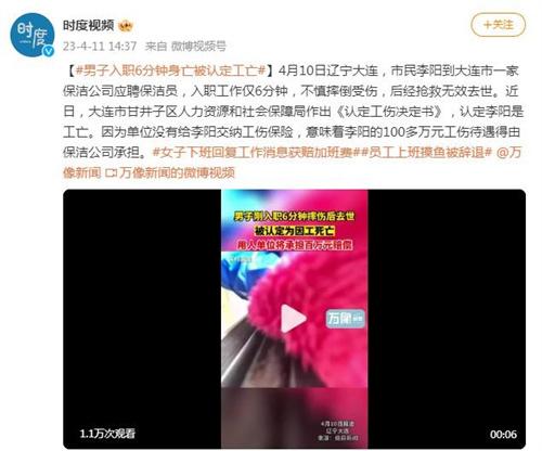 2021年6月,李某在入職大連某保潔公司6分鐘后不慎摔倒受傷,經(jīng)搶救無效死亡,李某的妻子是張某經(jīng)過一年多的勞動仲裁、一審、二審,終于拿到了遼寧省大連市甘井子區(qū)人社局作出的《工傷認(rèn)定書》,認(rèn)定李某是工亡,保潔公司將承擔(dān)李某的100多萬元工傷待遇。保潔公司現(xiàn)在沒有明確會支付工傷保險賠償,張某也將繼續(xù)打官司,為老公追回賠償。