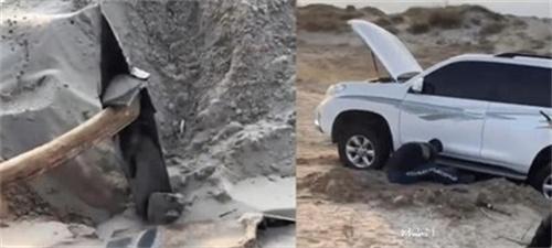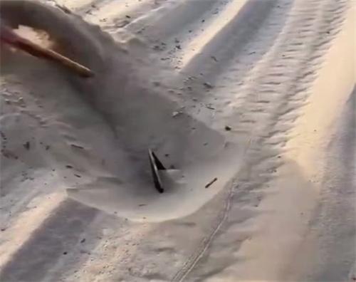 初步調(diào)查現(xiàn)場所挖掘的三角釘長度在20厘米左右,埋在沙中大約一米深。三角釘十分尖銳是很輕松就能夠刺破輪胎的,沙漠旅游景區(qū)有這樣的危險物品,不僅能夠?qū)囕v造成損壞,也會危及游客的人身安全,并且對景區(qū)的聲譽也會存在不良的影響。
