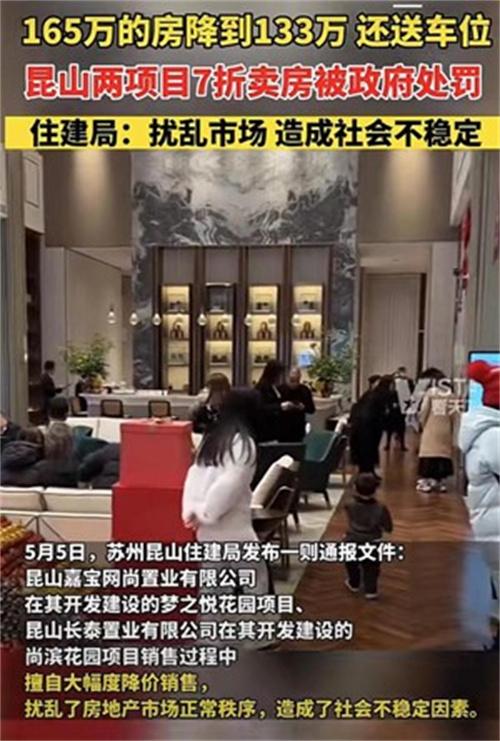 開年之際,房地產(chǎn)行業(yè)有所回暖,但在五一節(jié)假日期間,人們的重心明顯沒有放在房地產(chǎn)上面,在今年的五一節(jié)假日,各地的售樓處都顯得格外冷清,很多開發(fā)商為了爭取業(yè)績,甚至拿出了大幅降價銷售的措施,不過他們的這種措施則被政府相關(guān)部門處罰,5月5日,蘇州昆山住建局發(fā)布一則通知,該通告中顯示,昆山嘉寶網(wǎng)尚置業(yè)有限公司的夢之悅花園項目和昆山長泰置業(yè)有限公司的尚濱花園項目,在銷售期間大幅度降價擾亂房地產(chǎn)市場,對上述項目暫時關(guān)閉網(wǎng)簽,待整改結(jié)束后再開通。