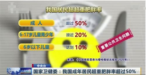 據(jù)中國疾病預(yù)防控制中心營養(yǎng)學(xué)首席專家趙文華所述,我國成年居民的超重肥胖率超過了50%,六歲到17歲的兒童青少年肥胖超重率達(dá)到了20%左右,六歲以下的兒童超重率達(dá)到了10%,目前我國居民的超重肥胖率上升速度較快,已有近半超重或肥胖,全人群都受到超重率的影響。