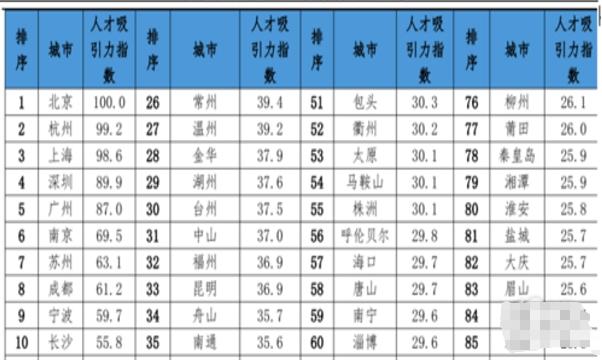 2021年中國最具人才吸引力的10個城市分別是上海,北京,廣州,深圳,成都,杭州,蘇州,武漢,南京,長沙,其中排在前三位的是北京,上海和深圳。北京雖然排名第一,但是從地區分布上來看,是北方唯一一個上榜的城市。從城市地區的分布情況上來看,由于經濟基礎比較雄厚,以及戰略定位比較高,東部城市是人才持續聚集的地區,上榜的城市中有7座,是東部的城市。長沙和武漢是中部的城市,西部地區上榜的城市只有成都。