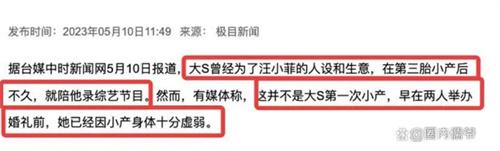 近日,大S和汪小菲這對冤家情侶再次被推上熱搜,有媒體爆料稱,大S曾經做過兩次流產手術,很多網友都在猜測大S流產的主要原因,因為大S的流產是因為汪小菲所致,紛紛在網上對汪小菲口誅筆伐,不過汪小菲并沒有對此事發聲,大S卻在5月10日的晚上發出長文回應自己的兩次流產傳聞,承認了自己兩次流產的事實,表示是因為各種原因導致流產。