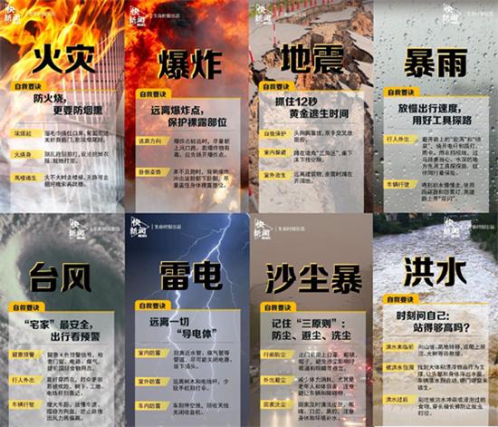 5月12號是我國第15個防災(zāi)減災(zāi)的日子,面對各大自然災(zāi)害如何才能有效的處置和防范。下面一張圖就可以看懂,首先遇到的是地震來臨要如何科學(xué)避嫌,當(dāng)?shù)卣饋砼R的時候在室內(nèi),可以選擇就近躲避找到一個結(jié)實的東西比如說桌子,可以迅速躲避到桌子下面,以防地震房屋塌陷被砸傷。在地震來臨的時候一定要躲避鏡子、窗戶、煤氣罐、爐灶和家用電器,如果距離出口很近可以用東西護(hù)住頭部,低著頭迅速跑出屋里。當(dāng)在室外遇到地震來臨,需要注意的是一定要遠(yuǎn)離立交橋、水塔,煙囪、路燈、廣告牌等等容易倒塌的物體,以免受到傷害。最糟糕的一種情況是被地震壓埋,首先要保持冷靜不要慌保存?zhèn)€人體力,接著盡量把胸前和鼻腔的雜物挪開,讓自己保持呼吸順暢,注意身邊的動靜,如果發(fā)現(xiàn)有人來救援大聲地呼救,或者敲打旁邊的物體制造出聲音。
