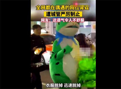 在《民生一網通》節目中上海市城管執法局局長徐志虎對這件事情做出了回應,他表示這種行為實際上還是在兜售玩具,而不是單純穿著青蛙的衣服和周圍的路人互動,按照規定這種行為是不被允許的,應當在區政府、鄉鎮人民政府劃定的特定區域當中在限定時段從事設攤經營的活動,不過徐志虎局長還表示,對于這種行為,一般會采取審慎監管、柔性執法的方式對待。