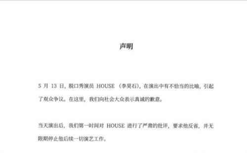在昨天笑果文化公司回應(yīng)新聞,記者在了解時(shí)間的第一時(shí)間就對(duì)李昊時(shí)本人進(jìn)行批評(píng),引以為戒,對(duì)全體演員進(jìn)行警示和教育,發(fā)文表示笑果文化一直注重文化使命和責(zé)任擔(dān)當(dāng),想要建立行業(yè)標(biāo)準(zhǔn)和行業(yè)的伙伴們一起做好這個(gè)行業(yè)。