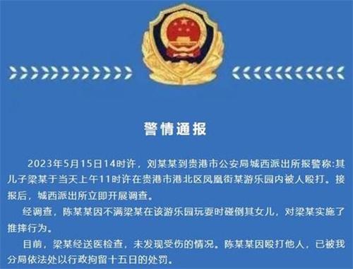 北京時間2023年5月15日下午2點(diǎn),位于貴港市的一個游樂園內(nèi),一名男子連續(xù)怒摔男童,警方回應(yīng):已將其行政拘留15日。