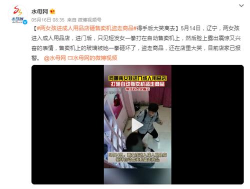 國內媒體報道,北京時間5月14日發生在遼寧的一起自動販賣機被盜事件在在網上引起熱議,由公布的監控視頻發現,兩個女孩走在路邊的成人用品售賣機中盜走商品,在拿到商品之后還得意洋洋的離開。