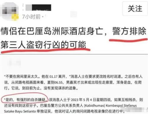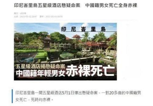 5月17日,印度尼西亞當(dāng)?shù)芈?lián)合調(diào)查組正式公布了兩位中國游客在酒店死亡的原因,根據(jù)相關(guān)調(diào)查組的調(diào)查結(jié)果來看,女方是被男方所殺,后續(xù)男子使用啤酒瓶刺傷自己的頸部自殺,有多名證人與這起案件有關(guān),經(jīng)過調(diào)查之后得出結(jié)論,這起案件的動(dòng)機(jī)是死者內(nèi)部的問題所致,雙方在當(dāng)?shù)匾患衣灭^住宿期間還發(fā)生過爭執(zhí),這起爭執(zhí)導(dǎo)致了男方的左手受傷。
