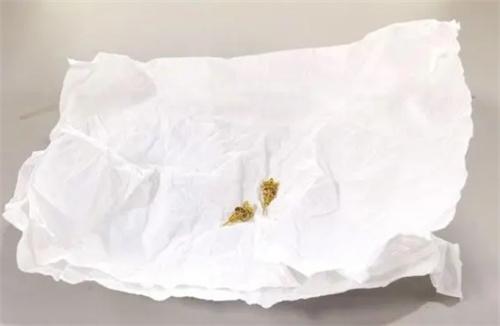 原來5月16號下午5:20左右的時候,李女士搭乘地鐵3號線在地鐵站的客服中心辦理充值業務,當時自己在包里面尋找充值卡的時候,順手將手中的一團衛生紙還有雨傘放在了客服臺子上,完成地鐵卡充值之后李女士就拿著自己的雨傘離開了,將衛生紙留在了服務臺上,客服中心的工作人員胡文昊在清理服務臺的時候就發現了這一團衛生紙,剛剛準備丟到垃圾桶里的時候,他就順手捏了一下這個衛生紙,就感覺特別硬隨手打開一看發現了一對特別閃的黃金耳釘。