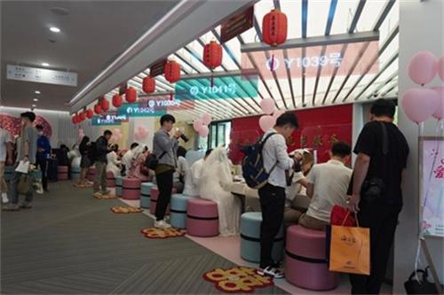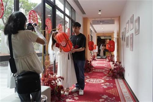 5月20號這一天記者更是早早的來到了位于閔行區的婚姻登記中心門口進行采訪,從門口看到了在當天婚姻登記中心打造了一幅極其大的噴繪擺放在了閔行區的河邊,在噴繪中更是寫到520愛臨閔行的字樣,很多來登記結婚的新人,更是紛紛在這一橫幅邊兒去進行打卡留念,在現場還有婚姻登記中心的工作人員,為了慶祝新人這一天結婚,婚姻登記中心的工作人員在現場還特意為他們安排了吉他彈唱。