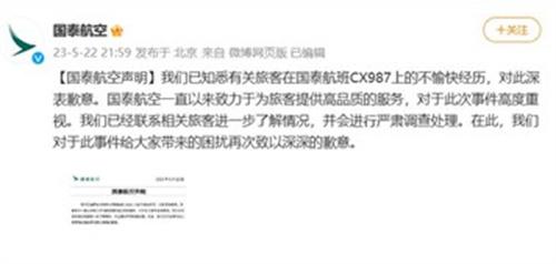 近日,國泰航空引起了不少網(wǎng)友的不滿,有很多網(wǎng)友在平臺上舉報國泰航空的空乘歧視非英語乘客,該事件曝光之后,國泰航空在5月22日發(fā)布一篇道歉聲明。