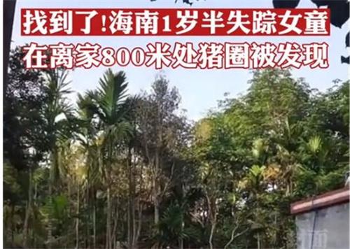 北京時間5月20日傍晚6點,海南省萬寧市的1歲半女孩失蹤。兩天之后的5月22日下午5點左右,在離家800多米的地方被人發(fā)現(xiàn)。從失蹤到被找到,近兩天的時間。