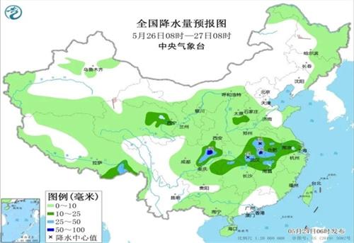 5月25日10時(shí),中央氣象臺(tái)發(fā)布強(qiáng)對(duì)流天氣藍(lán)色預(yù)警,從今日起到28日,中東部地區(qū)將出現(xiàn)一次范圍較大的強(qiáng)降雨,預(yù)計(jì)我國(guó)西南地區(qū)東部、江南西北部、江淮、西北地區(qū)東部、華北、東北地區(qū)南部等地,將先后有中到大雨,其中部分地區(qū)有暴雨,局地有大暴雨,根據(jù)預(yù)測(cè)最強(qiáng)的降雨時(shí)段將出現(xiàn)在26日至27日。