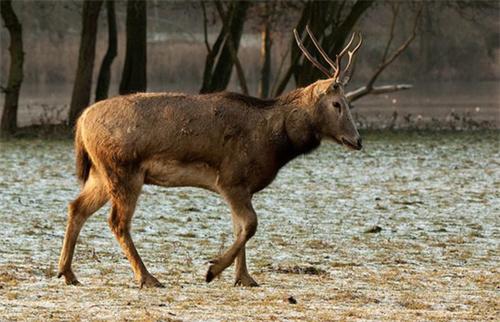 根據資料的了解麋鹿屬于一種鹿科,也是唯一的鹿類動物,頭部長的像馬,角又和鹿以及其它的鹿有些不同,蹄子比較寬大像牛,尾巴又細,長得像驢,所以被叫做四不像,頭部的角的形狀特別,形狀與其他鹿的犄角剛好相反,前方的杈分出小杈,后面的杈又幾乎不分叉,整體頭比較大,臉上眼睛小、眶下腺比較突出,其余四肢粗壯,有比較發達的蹄子,走起路來帶有響亮的聲音。原本比較喜歡生活在沼澤濕地的環境當中,一直以來以水草以及青草為主要的食物,屬于合群動物,善于游泳。