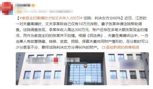 近日,一位女性在與丈夫離婚的時候,竟然意外發(fā)現(xiàn)丈夫的年收入高達(dá)300萬,這則消息在網(wǎng)上傳開后,瞬間引起了公眾的關(guān)注,據(jù)了解,事件中的當(dāng)事人在結(jié)婚多年一直不知道老公的真實年收入,最后在離婚的時候向法院遞交了財產(chǎn)線索調(diào)查的取證申請,沒想到經(jīng)過法院的調(diào)查,意外得知自己的丈夫每年的收入高達(dá)300萬元,而且還有大額的支取現(xiàn)金記錄,最終法院是判處女方得到夫妻共同財產(chǎn)的百分之六十。