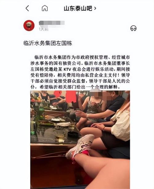 記者根據(jù)5月28日?qǐng)?bào)道的信息,并且向有關(guān)部門了解到信息,山東臨沂水務(wù)集團(tuán)董事長(zhǎng)左國(guó)棟,接受有償陪侍的相關(guān)問題,經(jīng)過核查之后情況屬實(shí)。山東臨沂市紀(jì)委監(jiān)委目前已經(jīng)介入調(diào)查。有網(wǎng)友在5月27日發(fā)帖,在文章中表示臨沂市水務(wù)集團(tuán)董事長(zhǎng)左國(guó)棟受邀參加某KTV夜總會(huì)時(shí)接受了有償陪侍,相關(guān)費(fèi)用由企業(yè)業(yè)主買單,這一消息一經(jīng)發(fā)布就引起了社會(huì)輿論。