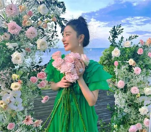 從另外一組照片中可以看到,闞清子手捧鮮花,滿臉上都掛著幸福的笑容,接受求婚的闞清子,手上戴了一顆超大的鉆戒,在照片當中顯得十分的惹眼。闞清子男朋友打造的這場求婚可以說十分浪漫,現場到處都是鮮花,而且桌子上還擺滿了一些玻璃餐具,難怪闞清子身旁的工作人員,在發布文案的時候直呼感動羨慕。
