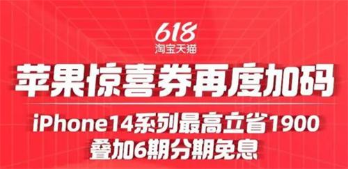 5月31日晚,電商平臺618活動正式開賣,淘寶天貓在此次618期間再度加碼蘋果優惠券,IPhone 14系列產品參與此次優惠活動,最高可做到立省1900元。apple store官方旗艦店在今年首次以價格直降的方式參加天貓618的活動,同時優惠還可以直接疊加天貓350元的優惠券,還為用戶送上了六期免息的服務,當下熱門的iPhone 14和iPhone 14 Pro系列機型都參與活動。
