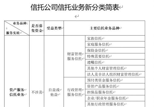 新的規定當中將信托業務分為了公益慈善信托和資產管理信托以及資產服務信托三大類,包含了25個業務品種。周小明介紹如今對信托業務進行了調整,主要的原因是之前的分類無法充分體現信托市場的變化以及監管政策導向要求。同時新聞記者也注意到了,對于信托業務分類落實新規要求時,信托公司較為關注的是監管,具體如何界定融資類的信托業務。