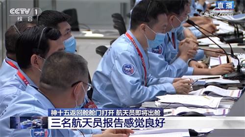 隨著返回艙的主降落傘打開,經過了九個多小時的太空返回過程,神舟15號載人飛船在6月4日凌晨六時30分成功著陸東風著陸場,擔任搜救回收任務的搜救分隊,在著陸艙著陸之后迅速發現目標,并且抵達著陸艙的降落現場,當艙門打開之后,醫監醫保人員快速天建,確認了航天員的身體健康狀態,三位宇航員依次說出了那句“感覺良好”。