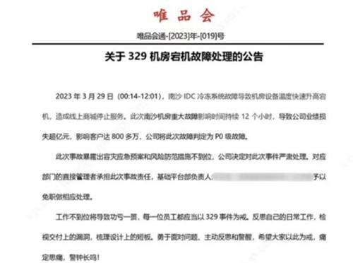 北京時間6月6號快科技最新報道:近日唯品會發布了一份處理公告,在公告中將329機房宕機故障被判定為p0級故障,是屬于非常高的事故級別,比如說主流程不通,主功能不能夠實現,頁面沒有辦法訪問,崩潰,或是影響面上影響非常大的事故,根據了解該起事故發生在北京時間3月29號,當天關于唯品會軟件突然間崩了而沖上了微博熱搜,系統的短時間故障導致用戶在使用加購物車功能的時候出現了異常,唯品會官方也在本次公告中表示,關于這一次南沙機房的重大事故影響時間長達12個小時,導致公司業績損失超過了上億元,而受到影響的顧客達到了800多萬人。