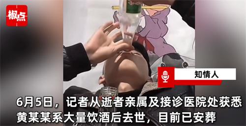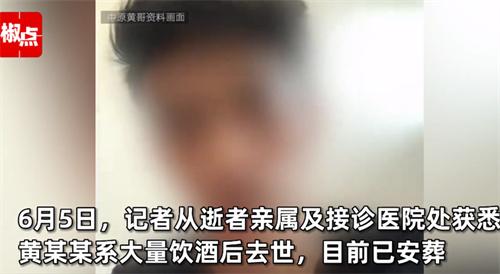 近日,網紅街接連發生讓人悲痛的事件,一個月前網紅三千哥因為喝酒過量導致不幸去世,讓人感到諷刺的是,在三千哥葬禮中曾表示自己要少喝一點的中原黃哥。最近的一次深夜直播中與其他的網紅PK喝酒,短時間內連喝兩瓶白酒,導致身體承受不住直接倒在地上,凌晨四點他的妻子上樓查看情況發現丈夫倒在地上,于是撥打電話求救,在醫生的指導下進行人工呼吸仍舊無力回天,中原黃哥就這樣在直播中去世。