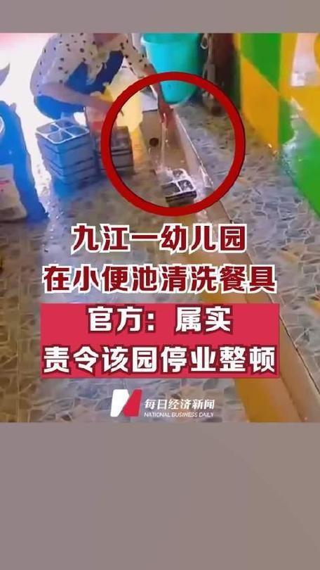 有網友于6月7日在網絡上發布短視頻反映九江市一個幼兒園中的工作人員將孩子們的餐具放到了小便池中進行清洗。視頻中只見一名男子一手拿著餐盤放到一條細長的水池,另外一只手拿著水管對餐盤沖洗,沖洗完成之后,再將餐盤放到地上,女子放置餐盤的水槽是幼兒園小朋友們的小便池。九江市教育局和網信辦在6月8日時發布公告表示已經對網傳信息進行了關注,并且對事件進行了核查,調查核實之后,已經讓這家幼兒園停業整,對涉事的相關人員會展開深入的調查,一定會嚴肅的依法的處理這件事情。