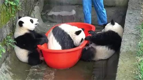 渝可渝愛的洗澡視頻在網絡平臺一經公布,萌化無數網友的心。視頻中的龍鳳胎兄妹各做各的事,互不干擾,一只熊貓洗澡的時候,另一只熊貓在旁邊啃竹子,像極了人類的龍鳳胎兄妹,爆笑連連。