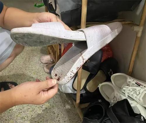 北京時間6月12號記者跟隨受害人劉某美的弟弟劉洋一起來到了案發出租房外,只見出租屋的大門仍然被警方貼著封條,上面顯示未得許可不得入內,門口的鞋架上還殘留著二位受害人的血跡。