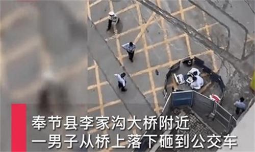 北京時間6月19日,位于重慶市奉節縣的李家溝大橋附近,再一次發生了一起無比痛心的事件,在該起事件里面,有一名男子從橋上掉了下來,直接砸到了當時路邊停放的一輛公交車頂部,從視頻內容中也可以清晰的發現,這輛被砸的公交車當時竟停放在機動車道上,而公交車頂部被砸之后直接凹了進去。這名從大橋上落下來的男子,滾落到地上就沒有任何活動跡象了,記者也對此回應稱,從大橋上跳下來的是一名已經60多歲的老人,而且這個老人從橋上跳下來之后,當時就沒了呼吸,奉節公交公司對此也給出回應稱,這個男人雖然砸中了公交車,但是公交車內的駕駛員并沒有受傷。