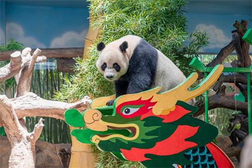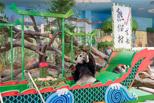 廣州長隆野生動物園的保育員喂大熊貓們過了一個特別的端午節,精心為大龍熊貓準備了龍舟和粽子。