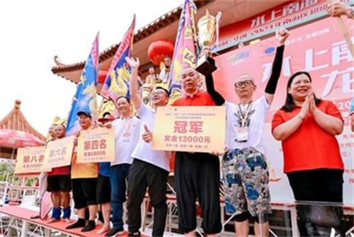 今年的賽事像往年一樣分為初賽和決賽兩個部分,初賽時的賽道是600米,形式為直道競速,各支參賽隊伍兩兩分組,按照用時最少的規則決定出前8名,最后參加決賽。決賽采取的形式是600米往返競速,按照所使用的時間決定出1~8名的排名。經過激烈的角逐,獲得本次比賽冠軍的是鹽步迴龍2隊,獲得本次比賽亞軍的鹽步永平2隊。