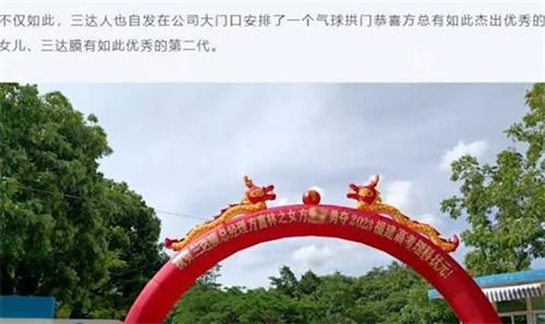 近日高考成績(jī)已經(jīng)成為了當(dāng)前的熱搜榜,只要打開(kāi)熱搜榜,可以發(fā)現(xiàn)很多考生的成績(jī)紛紛已經(jīng)到達(dá)了600分以上,甚至還有一部分考生的成績(jī)已經(jīng)到達(dá)了700分,而這些考生為了慶祝這一成績(jī),也紛紛發(fā)布各種消息。近日三達(dá)集團(tuán)的總經(jīng)理女兒由于高考成績(jī)?yōu)?10分睡在群里慶祝,董事長(zhǎng)在看到這一消息之后,也立刻在官方微博上發(fā)文對(duì)此表示祝賀。但網(wǎng)友們看到這一消息之后,則紛紛懷疑三大集團(tuán)的董事長(zhǎng)有涉嫌炒作的嫌疑。