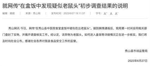 就在今年的6月份,也是一個不平凡的月份,江西工業職業技術學院食堂吃出老鼠頭的事情沒有平息,重慶秀山中醫院再一次爆出吃到老鼠頭的食物。網友在2023年6月27日社交媒體上發布視頻爆料,在重慶市秀山中醫院盒飯當中疑似吃到了老鼠頭,可將這名網友惡心的不輕,差一點就吐了出來,目前警方將盒飯帶走進行調查。據網友爆料的經過網友是在中醫院食堂買盒飯,其中有一道菜叫做魔芋燒鴨,網友就是在這道菜當中吃出了老鼠頭,短時間之內估計會留下很大的陰影。